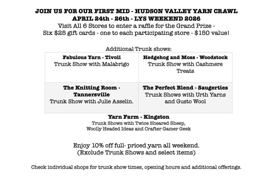 Plan ahead to come meet the duo behind the beloved brand Julie Asselin! They’ll be visiting our store on Local Yarn Store Day, Saturday, April 25th, at our Tannersville location from 11–5pm.